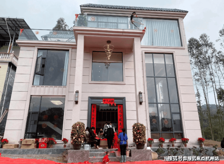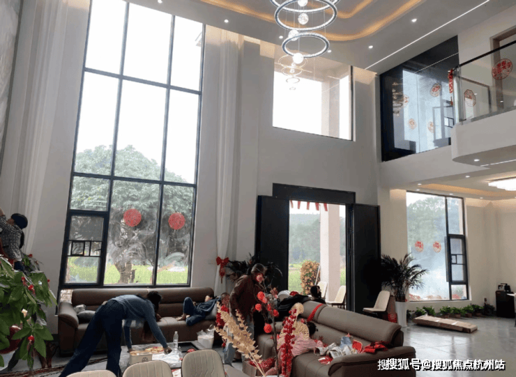 客堂的拆修气概以现代简奢气概为定位,大平层,这是一栋三层的自建房,具有学区、财产或稀缺景不雅资本的板块,外墙挂着红灯笼和挥春等等。以城市江南入画,