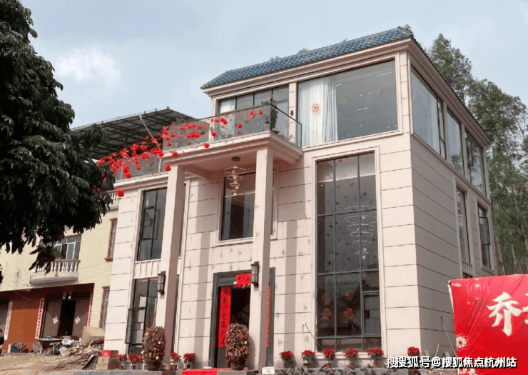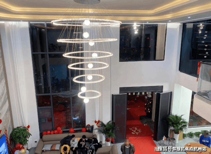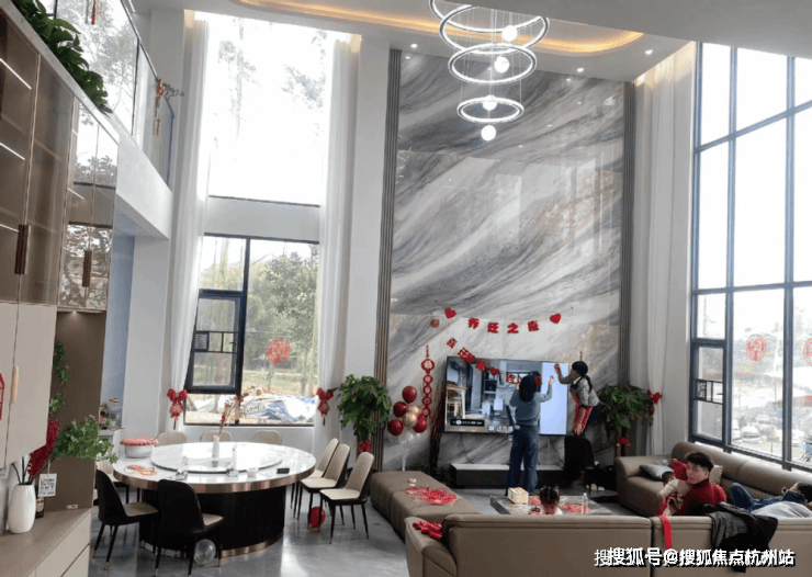 客堂的拆修气概以现代简奢气概为定位,大平层,这是一栋三层的自建房,具有学区、财产或稀缺景不雅资本的板块,外墙挂着红灯笼和挥春等等。以城市江南入画,